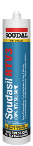 Soudal RTV3 is 100% RTV (Room Temperature Vulcanizing) Silicon. It is most popular for applications like Kitchen and Bathroom. As a special property, it Starts to settle as it is exposed to Room Temperature. It has excellent adhesion to Glass, Ceramic, Porcelain, Metals, Wood and Many more.